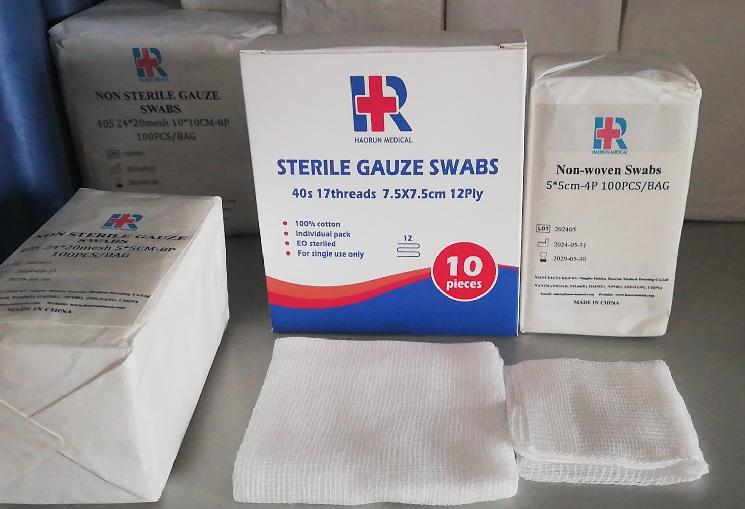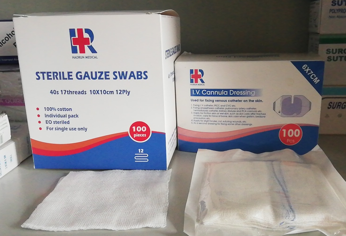 - Стерилни тампони на марля: Идеални за открити или постхирургични рани за предотвратяване на инфекция, често използвани за почистване и обличане.