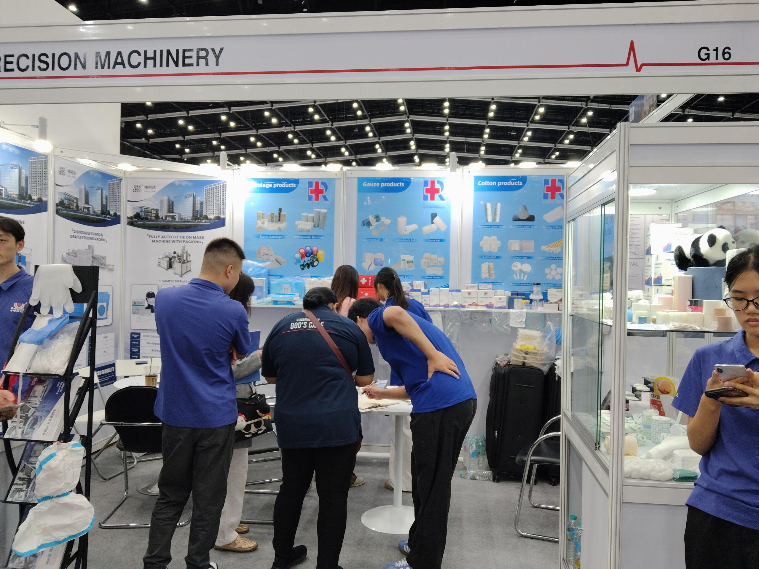 На мястото на изложението щандът G16 на HAORUN MEDICAL е много привлекателен. Както може да се види от снимките на място, наоколо има плакати с различни медицински продукти, покриващи различни медицински консумативи като бинтове и памучни тампони. Персоналът, облечен в униформени сини дрехи, е зает да общува с професионалната публика, която идва да се консултира. Някои внимателно представят характеристиките и предимствата на продуктите на аудиторията, докато други внимателно записват нуждите и отзивите на клиентите. Атмосферата на място е топла и професионална.