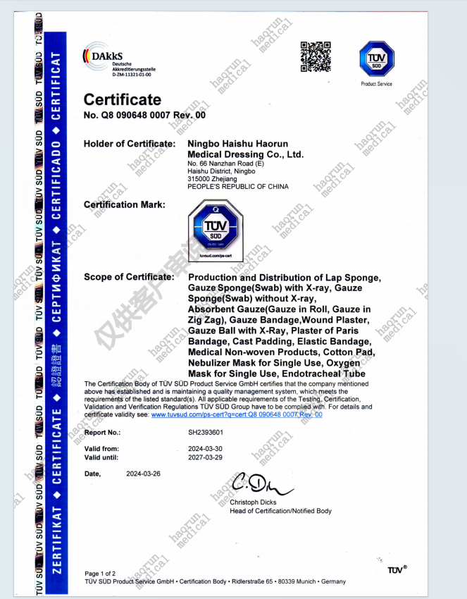 Нова отправна точка за глобална експанзия: Чрез този одит на TÜV, Haorun Medical планира да се разшири допълнително в пазари от висок клас като ЕС и Северна Америка, като същевременно консолидира водещата си позиция на съществуващи пазари като Латинска Америка и Югоизточна Азия. Продуктовата линия на компанията също ще се разшири от основни консумативи до продукти с висока добавена стойност."Качеството не е краят, а пътуване към непрекъснато усъвършенстване." Компанията винаги се е придържала към най-високите международни стандарти, предоставяйки безопасни и надеждни медицински продукти на глобални клиенти.