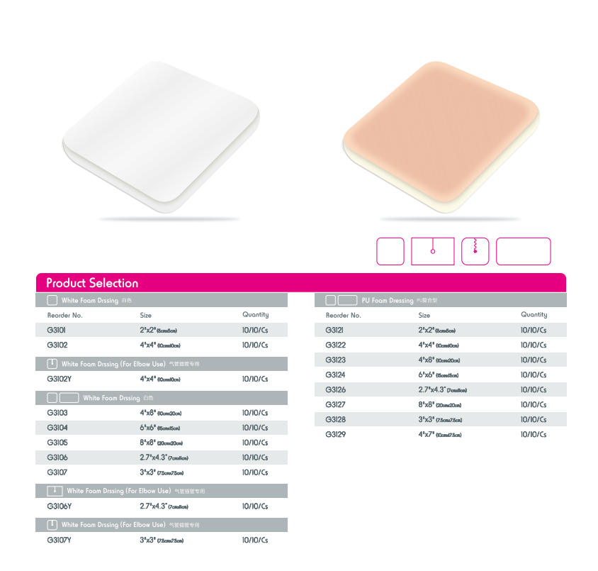 Превръзките от пяна са меки, подплатени продукти за грижа за рани, направени от абсорбиращ, порест материал. Тяхната ключова сила е в управлението на умерен до тежък дренаж на рани, като същевременно поддържат леглото на раната подходящо влажно, за да ускорят заздравяването. Меката пяна осигурява омекотяване и защита, а незалепващата им повърхност позволява безболезнено отстраняване.