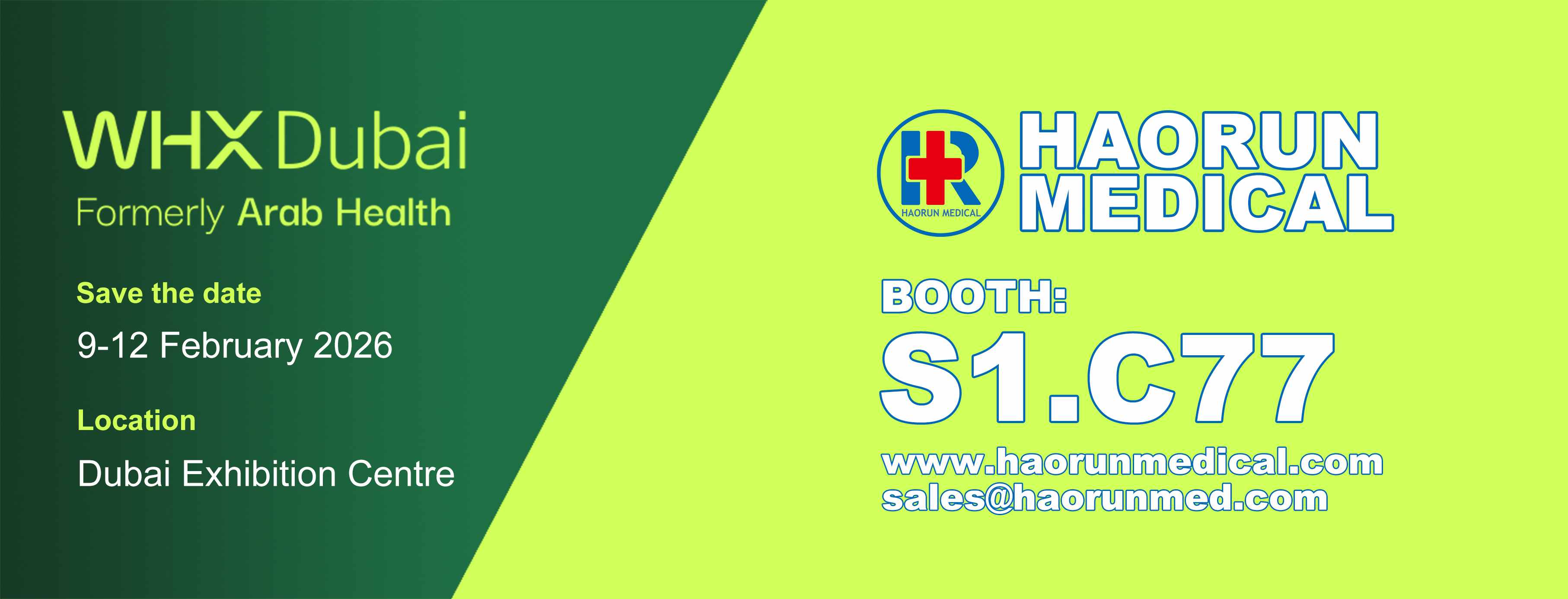 От 9 до 12 февруари 2026 г. дългоочакваното изложение WHX Dubai (бивше Arab Health) беше открито грандиозно в изложбения център на Дубай, привличайки глобалното внимание от здравната индустрия. Като професионален производител на медицински консумативи, Haorun Medical Dressing Co., Ltd демонстрира своите основни продукти на щанд S1.C77, демонстрирайки възможностите на Китай за научноизследователска и развойна дейност и стандартите за качество в сектора на медицинските консумативи пред глобалните купувачи.