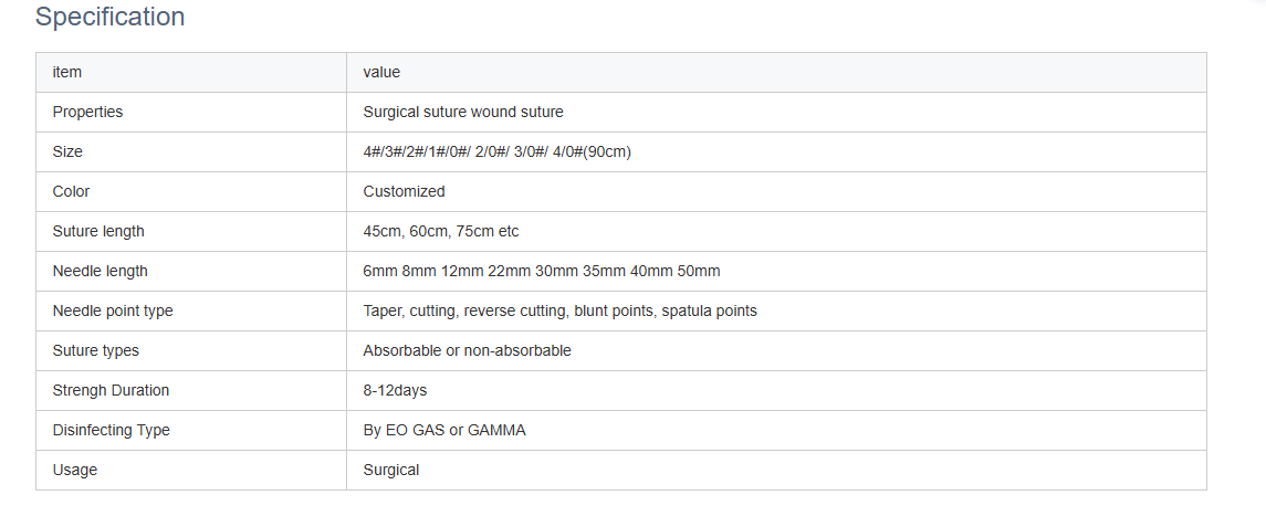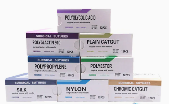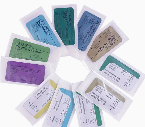 5. Мултипни размери и материали-налични в абсорбиращи се (например, викрил, монокрил) и не-абсорбиращи (например найлонови, копринени) опции.